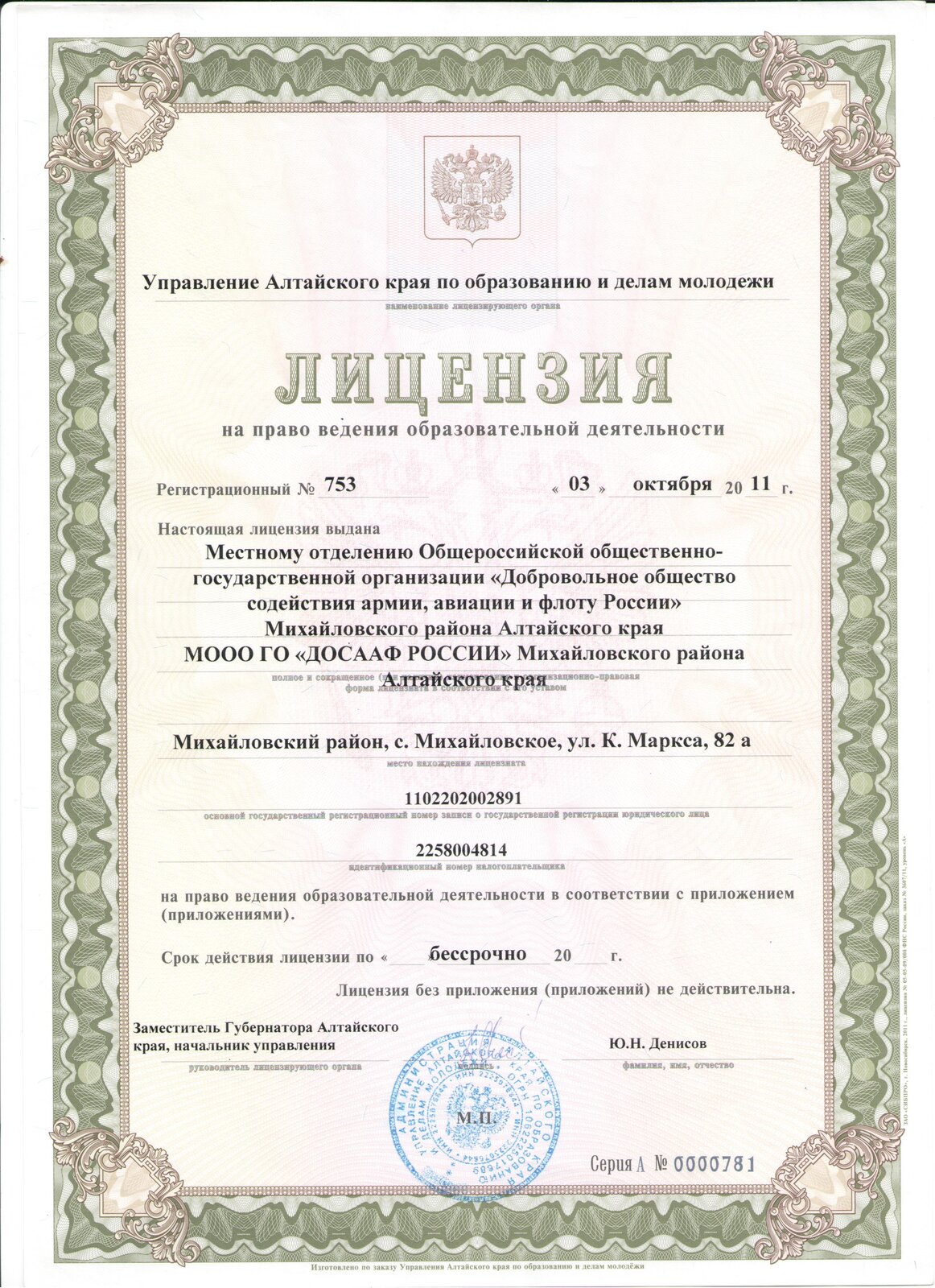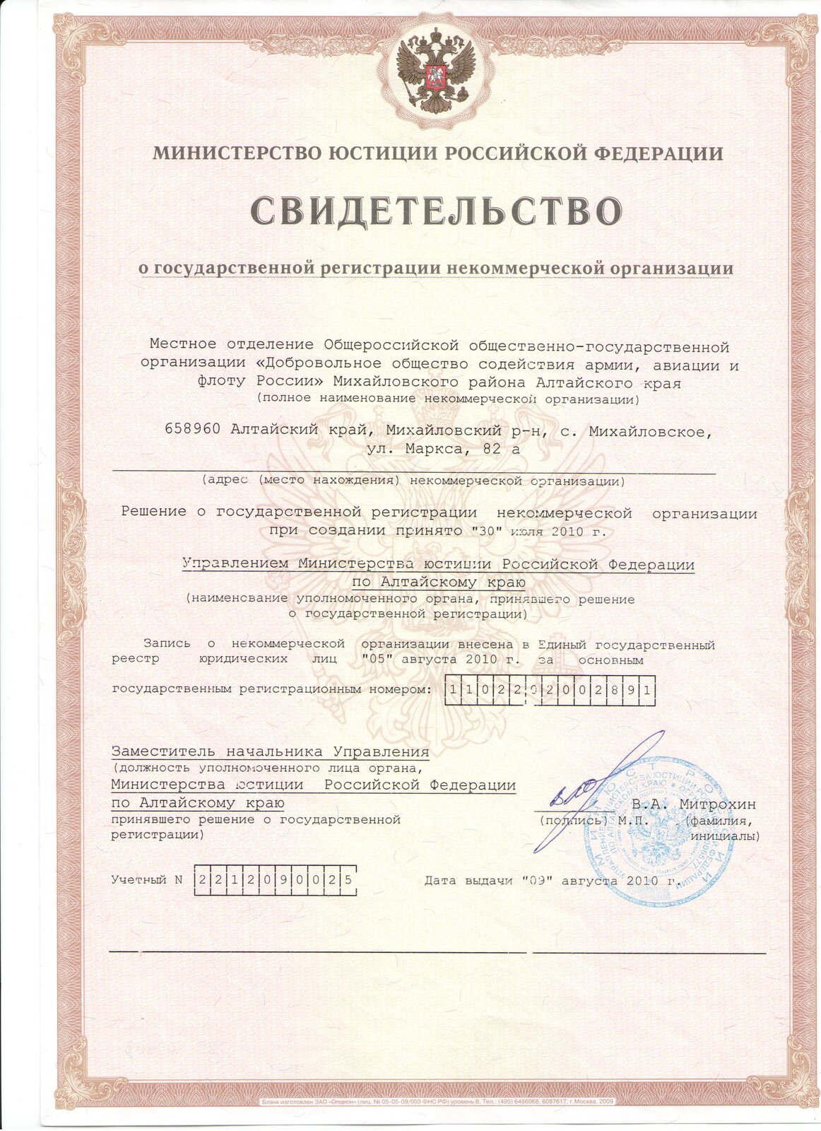 658960, Алтайский край, село Михайловское, ул. К.Маркса, 82 А